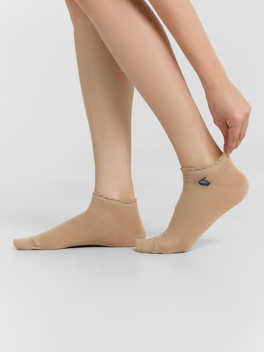 рис.1982  Женские носки укороченные с пикотом на борту и рисунком в виде пироженки.