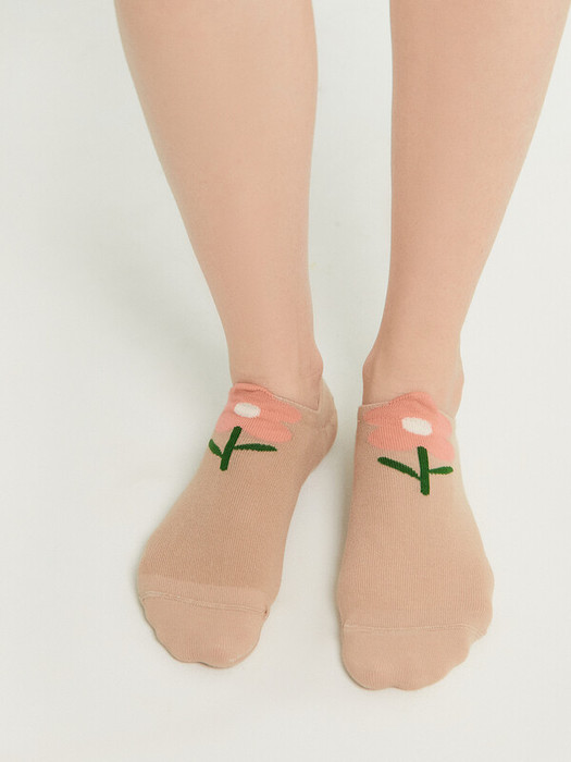 рис.2747 Гладкий супер-короткий женский носок с 3-мя Y-образными пятками, рисунком в виде цветов и 3-d рисунком на борту.