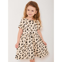 Платье А-силуэта с отрезными воланами. Треугольный вырез горловины обработан бейкой из основного полотна в чистый край. Короткие рукава-крылышки покроя реглан. Низ лифа фигурный. По переду лифа пришиты три пуговицы в качестве декора. Низ изделия и рукавов обработаны швом вподгибку.