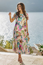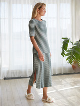 Платье свободного силуэта из футера. Платье имеет длину "миди" и удлиненную линию плеча. Изюминка модели – изящные боковые разрезы, которые очень популярны в текущем сезоне. Рукава короткие, вырез горловины круглый. Стильно!