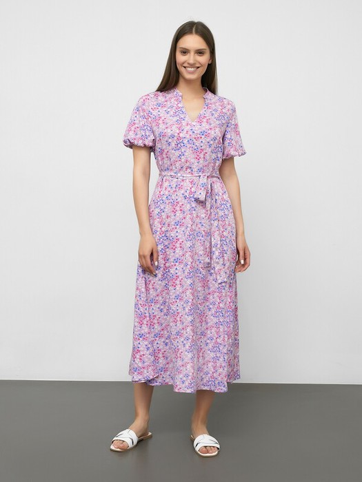 Очаровательное женское платье из нежной и легкой вискозы. Платье расширяется к низу, талия подчеркнута широким поясом. Рукава-фонарики длиной до локтя. Длина модели ниже колена. Рекомендуем для стильных летних образов!