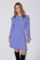 Низ платья расширяется к низу. Длина платья ниже колена.