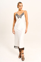 По низу платья широкая окантовка с сырым срезом.