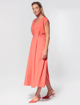 Платье прямого силуэта. Горловина круглой формы, обработано бейкой из основного полотна в "чистый край". Рукав втачной, длинный. На детали переда застрочены вытачки. Спинка со средним швом и застежкой на потайную молнию. Нижний срез платья и рукавов обработан швом вподгибку с закрытым срезом.