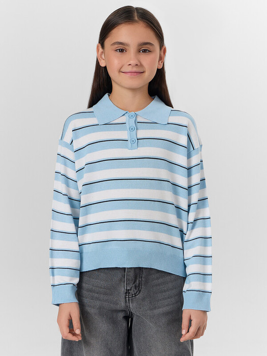 Совместные покупки Омск Детская одежда Джемперы, свитеры — 24.03 Mark Formelle ПОЛО ДЛЯ ДЕВОЧЕК 127975 127975 бело -голубая полоска