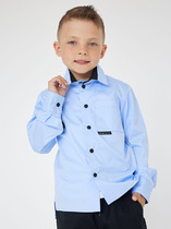 Сорочка верхняя для мальчиков прямого силуэта с воротником. По переду обработана застежка на пуговицы и петли. Диаметр пуговицы 1 см, 4 прокола. Рукава короткие, втачные, слегка спущены. На спине кокетка. Нижние срезы изделия и рукавов обработаны швом в подгибку.