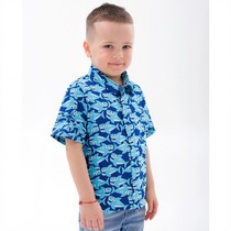 Сорочка верхняя для мальчиков прямого силуэта с воротником. По переду обработана застежка на пуговицы и петли. Диаметр пуговицы 1 см, 4 прокола. Рукава короткие, втачные, слегка спущены. На спине кокетка. Нижние срезы изделия и рукавов обработаны швом в подгибку.