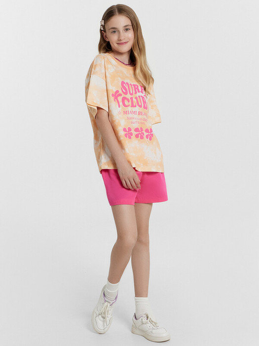 Шорты для девочек короткие. Пояс отрезной, с втаченной эластичной тесьмой RV30, образующей сборку. На задних деталях шорт клапаны имитирующие карман, с закрепкой посередине. Низ шорт обработан швом в подгибку.