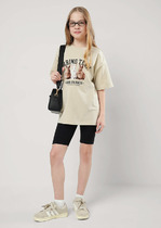 Шорты для девочек свободного силуэта из ткани. Посадка высокая. На детали переда карманы с отрезным бочком. Пояс отрезной с эластичной тесьмой RV40 внутри, на поясе пробиты петли и вставлен шнур из основного полотна. Шов втачивания пояса распошит. Длина выше колена. Низ обработан швом вподгибку с закрытым краем.