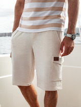 Текстильные шорты с классической линией талии длиной выше колен. Полотно выполнено из натурального хлопка и льна. Пояс отрезной, с регулировочным шнурком в талии. Есть удобные карманы «хулиганы». На передней левой детали проложены отделочные строчки – имитация гульфика. Стильный выбор!
