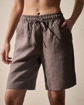 Шорты свободного силуэта. Пояс цельнокроеный, с эластичной тесьмой внутри. По правой, передней половинке обработана планка с имитацией застежки и с двумя пуговицами 10 мм . Нижние срезы обработаны швом вподгибку.