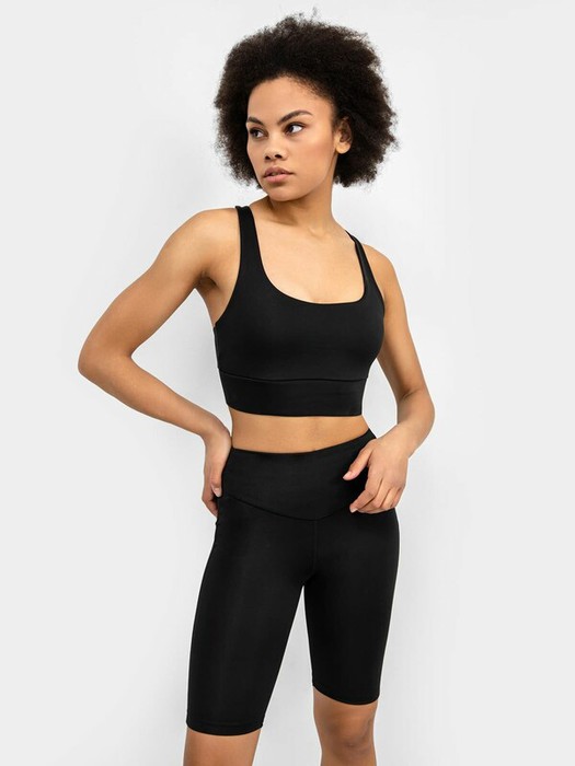 Топ женский изготовлен из трикотажного полотна интерлок. Топ облегающего силуэта на широких бретелях. Вырез горловины округлый.