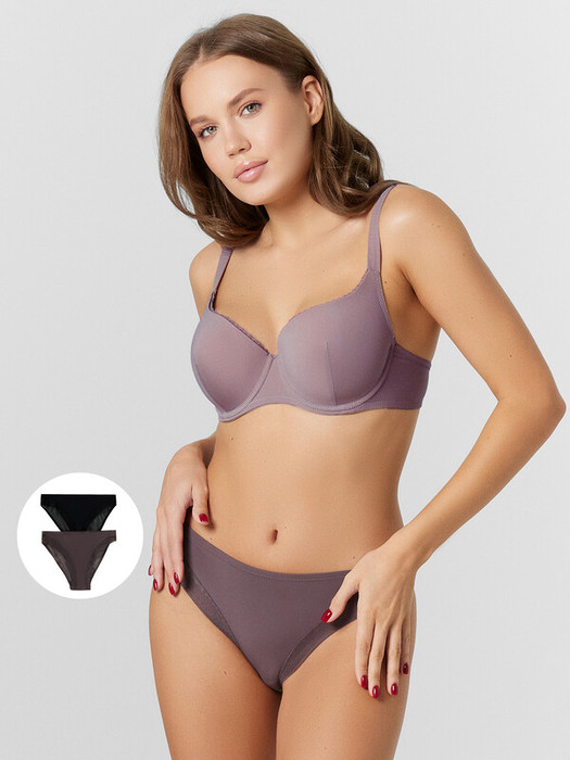 Трусы женские со средней посадкой силуэта «слип». Передняя центральная деталь из микрофибры, боковые передние детали из эластичной сетки, со сгибом по ножкам.  Подкладка ластовицы из кулирного полотна отлетная по переднему краю.