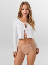 Трусы женские, средняя линия талии, силуэт-слипы. Передняя и задняя детали выполнены из интерлока. Подкладка ластовицы выполнена из кулирки, отлетная по переднему срезу. Боковые протяжки трусов выполнены из декоративной тесьмы.