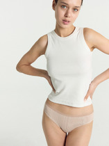 Передняя центральная деталь и ластовица выполнены из кулирки. Ластовица отлетная по переднему срезу. Боковые части переда и задняя деталь из широкого кружева. Трусы с боковыми швами. Верхний срез трусов и срезы по ножкам пер. дет. обработаны эл. тесьмой 10мм, 8мм рабочая зона (KTE6-10 эл.тесьма с зубом, Arteks E2298 ) на 4-укольном зигзаге в 1 прием. На задней детали шов по центру.