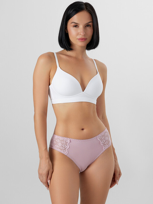 Передняя центральная деталь и ластовица выполнены из кулирки. Ластовица отлетная по переднему срезу. Боковые части переда и задняя деталь из широкого кружева. Трусы с боковыми швами. Верхний срез трусов и срезы по ножкам пер. дет. обработаны эл. тесьмой 10мм, 8мм рабочая зона (KTE6-10 эл.тесьма с зубом, Arteks E2298 ) на 4-укольном зигзаге в 1 прием. На задней детали шов по центру.