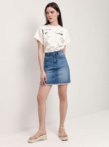 Юбка прямая, длина миди. Верхний срез обработан швом вподгибку с эластичной тесьмой внутри ( 40мм 40RV внутр.). На передней и задней детали проложена строчка по среднему шву. На задней детали в среднем шве обработан разрез. Нижний срез обработан швом вподгибку. Усилитель разреза- Лента репсовая шир.7мм, SFLR-2 .