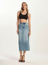 Юбка А-силуэта, длиной миди. Верхний срез обработан швом вподгбку с эластичной тесьмой (внутренняя). На задней детали застрочены вытачки. Нижний срез обработан швом вподгибку.