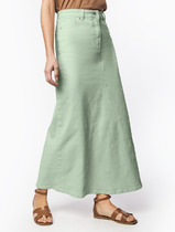 Юбка А-силуэта, длиной миди. По переду заложена складка. По бокам обработаны карманы-хулиганы, подкладка из подкладочной ткани. Верхний срез обработан обтачкой. Задняя часть с центральным швом и застежкой на молнию (металл №5). На задних половинках застрочены вытачки. Нижний срез подклеен.