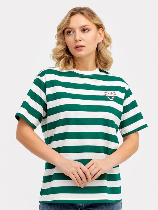 Совместные покупки Омск Женская одежда Футболки — Mark FormelleФУТБОЛКА ЖЕНСКАЯ 112678 112678 молочно -зеленая полоска 75368