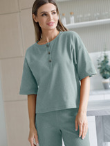 Футболка прямая, свободная. Горловина круглой формы обработана бейкой в 3 сложения из основного полотна. Рукава втачные, корткие. Нижние срезы футболки и рукавов обработаны швом вподгибку.