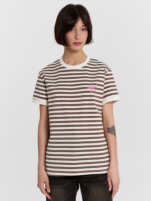Mark FormelleФУТБОЛКА ЖЕНСКАЯ 112954 112954 шоколадная полоска на белом 18112