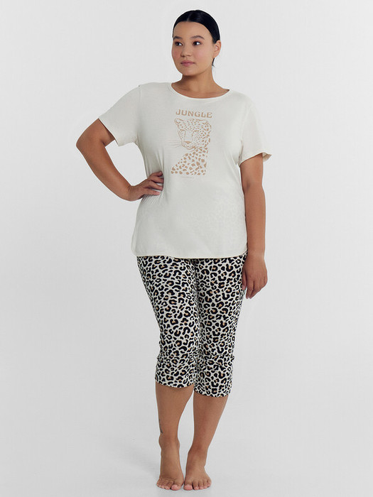 Совместные покупки Омск Женская одежда Пижамы, халаты — Mark FormelleКОМПЛЕКТ ЖЕНСКИЙ (ДЖЕМПЕР, КАПРИ) 592228 592228 белый песок +леопар