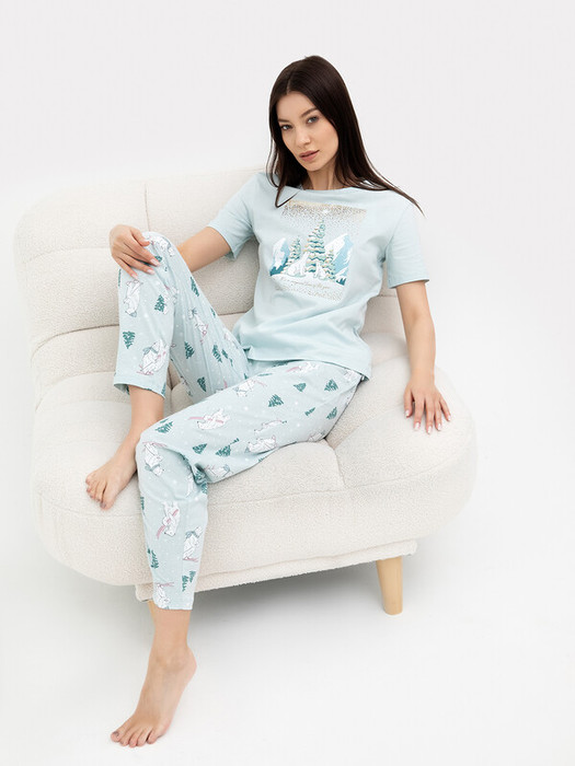 Совместные покупки Омск Женская одежда Пижамы, халаты — Mark FormelleКОМПЛЕКТ ЖЕНСКИЙ (ФУТБОЛКА, БРЮКИ) 592369 592369 мятное суфле +медв