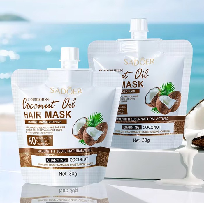 Кокосовое масло обладает приятным и насыщенным ореховым ароматом и не требует добавления никаких отдушек, красителей и загустителей. В состав кокосового масла входит олеиновая кислота, которая очень благоприятно воздействует на волосы и кожу головы, обладает антисептическими свойствами. Кокосовое масло восстанавливает структуру волос, питает, делает их гладкими и крепкими. Оно создает защитный слой для каждого волоска, из-за этого покров меньше повреждается при сушке, расчесывании, завивке. Регулирует работу сальных желез кожи, придает дополнительный объем волосам. Масло содержит триглицериды умеренной жирности, которые способны проникать глубоко в волосяные луковицы и стержни, благодаря чему волосы и кожа не только получат хорошее питание, но и улучшится состояние потускневших локонов.