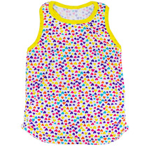 Трикотажная майка, декорированная ярким принтом деталями из пайеток. Свободный крой, круглый вырез горловины, спинка "борцовка".На ребенке представлен размер 140:- Ширина изделия по линии груди 36 см- Ширина по низу изделия 47,5 см- Длина изделия 49,9 смРазница между размерами составляет 1,5 см.