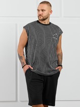 Майка мужская из пластичного однотонного трикотажного полотна в рубчик, приятного к телу. Модель свободная, с широкой спущенной линией плеч, глубокой проймой. Может подойти для отдыха, прогулок и занятий в спортзале.