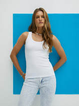 Стильная и удобная майка с фактурой «английская резинка» отлично подойдет и в качестве повседневной базы, и для занятий спортом.