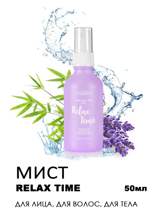 Мист Relax многозадачен. Используйте его в течение всего дня: в качестве тоника для лица, увлажняющего спрея для волос или тела, вместо термальной воды или гидролата.