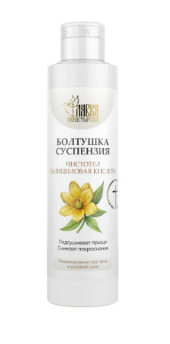 Болтушка изготовлена по монастырскому рецепту для ухода за проблемной, склонной к воспалениям и угревой сыпи кожей.