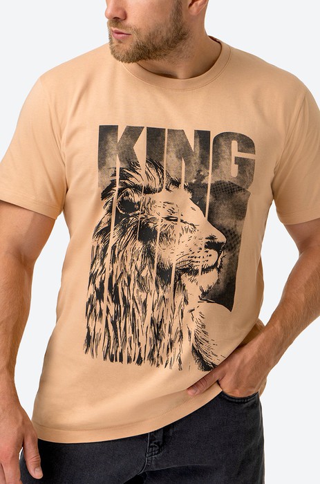 Бежевая мужская футболка из натурального 100% хлопка – идеальное решение на каждый день. Удобный вырез горловины, короткий рукав и прямой крой окунут в мир свободы и комфорта.
