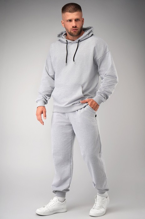 Мужской костюм серого цвета выполнен из качественного трикотажа футер двухнитка. Вдохновленный лаконичностью и функциональностью спортивный костюм идеален для тренировок и повседневной жизни.