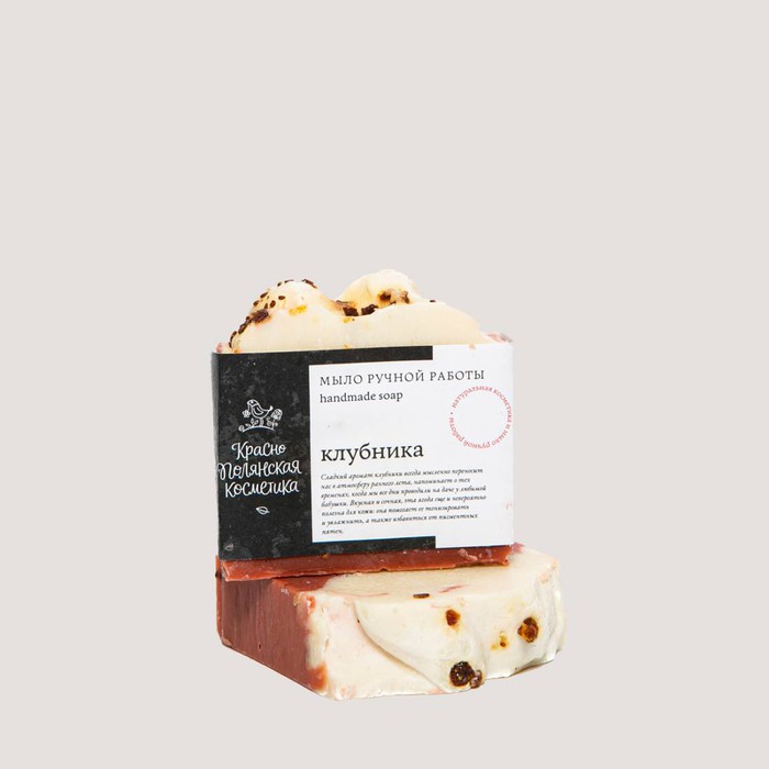 Sodium salts of: Cocos Nucifera Oil, Olea Europaea Fruit Oil, Ricinus Communis Seed Oil, Helianthus Annuus Seed Oil, Vitis Vinifera Seed Oil (Натриевые соли: кокосового масла, оливкового масла, касторового масла, подсолнечного масла, масла виноградной косточки), Agua (Вода), Titanium Dioxide (Диоксид титана), Perfume (Парфюмерная композиция), CI 77007 (Натуральный краситель), Fragaria Ananassa Seed (Семена клубники), Fragaria Ananassa Fruit Powder (Порошок клубники), Fragaria Ananassa Fruit (Кусочки клубники), CI 77491 (Натуральный краситель).