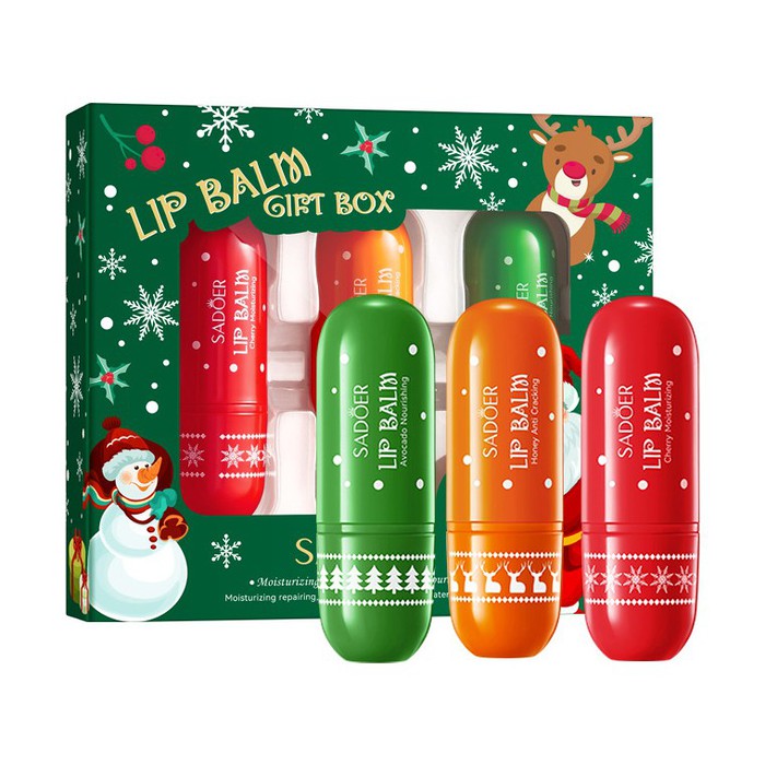 Совместные покупки Омск Косметика и парфюмерия Прочий макияж — Набор бальзамов для губ Новогодний SADOER, 3 штуки.