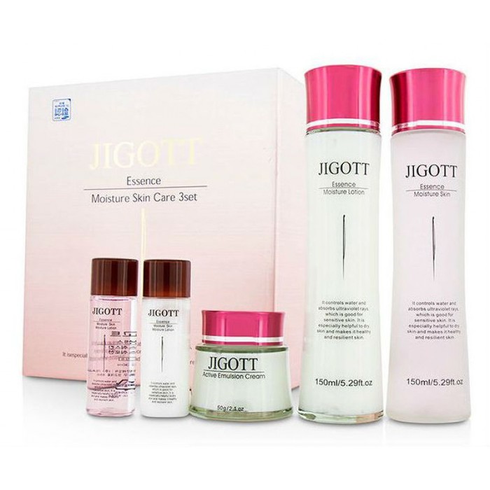 Набор интенсивно увлажняющих средств JIGOTT Essence Moisture Skin Care 3 Set.Объем: 50 мл + 150 мл + 150 мл + 30 мл + 30 мл.