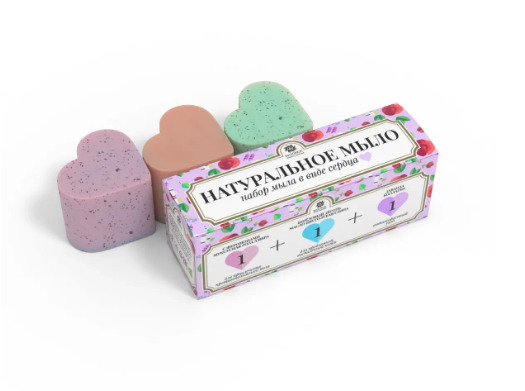 Совместные покупки Омск Хозтовары и личная гигиена Мыло, жидкое мыло — Набор из трёх мыл в виде сердца фиолетовый, 135 г, "Бизорюк"