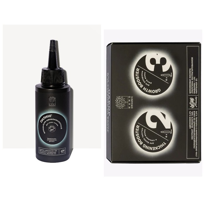 ** 1. Набор ампул для утолщения и ускорения роста волос, 12*10 мл, Nano Organic.