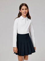 Нарядная блузка для девочки выполнена из текстиля - шелковистая, малосминаемая, эластичная ткань элегантно выглядит на фигуре. Полочка и спинка свободного покроя. На полочке в верхней части складка декорированная украшением. По плечевым швам декоративный ломпас из контрастной тесьмы. Рукава длинные на манжете, воротник отложной с застежкой сзади. Классическая блузка идеально подойдет для торжественного случая