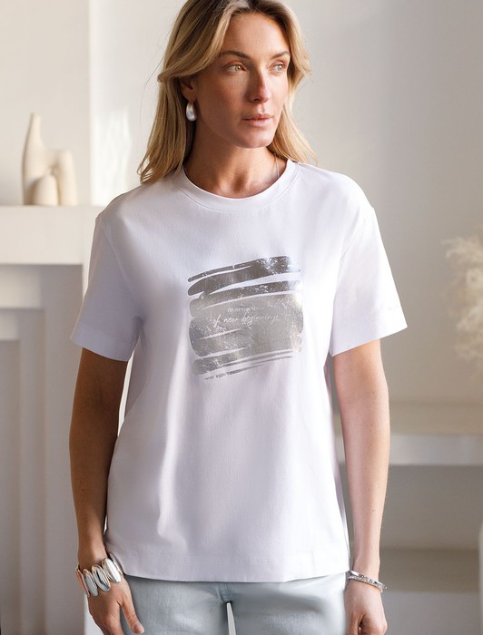 Совместные покупки Омск Женская одежда Футболки — Нарядная футболка с принтом фольгой из премиального хлопка с эластаном