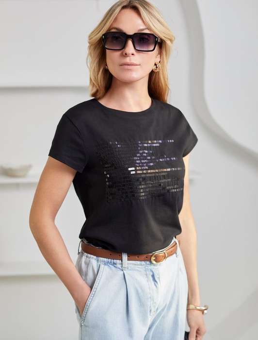 Эта нарядная футболка подходит для создания образа на каждый день и идеально подойдет на выход. Модель не мнется, что делает ее практичным вариантом для активных женщин, которые ценят стиль и удобство.