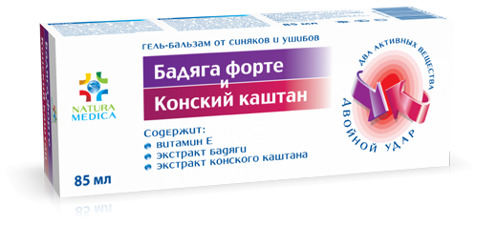 Экстракт бадяги в сочетании с экстрактом конского каштана оказывает мощное противоотечное и сосудоукрепляющее действие. Способствует быстрой регенерации тканей, укреплению стенок кровеносных сосудов и капилляров, уменьшению отеков и рассасыванию гематом, обладает успокаивающим действием. Конский каштан оказывает мощное венотонизирующее и противоотечное действие, укрепляет стенки сосудов, улучшает крово- и лимфообращение, снимает отечность. Состав: экстракты конского каштана, бадяги, пиявки медицинской, троксерутин, Д- пантенол, масло арники, масло лаванды, масло лимона, аллантоин, масло чайного дерева, витамин Е. Объем: 85 мл.