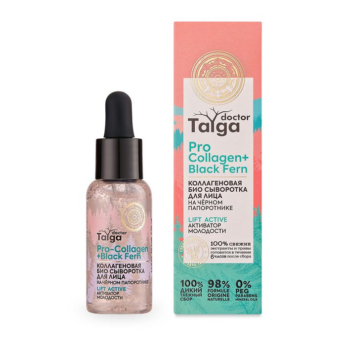 Aqua with infusions of Pteridium Aquilinum Extract (экстракт дикого черного папоротника), Rubus Chamaemorus Seed ExtractWH (экстракт таежной морошки), Schizandra Chinensis Fruit ExtractFE (экстракт лимонника нанайского), Pinus Sibirica Seed ExtractWH (экстракт кедра сибирского), Laminaria Japonica ExtractWH (экстракт ламинарии аинской), Organic Dracocephalum Nutans Extract (органический экстракт травы дракона), Organic Rhodiola Rosea Root Extract (органический экстракт родиолы розовой), Rhododendron Adamsii Leaf/Stem ExtractFE (экстракт саган-дайля), Organic Phellodendron Amurense Bark Extract (органический экстракт бархата амурского); Glycerin, Panthenol (провитамин B5), Secale Cereale Seed Extract (растительный про-коллаген), Cocoyl Proline, Sodium Hyaluronate (гиалуроновая кислота), Hydroxyethylcellulose, Citric Acid, Benzyl Alcohol, Ethylhexylglycerin, Parfum, Eugenol, Limonene.
