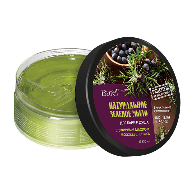 Натуральное зеленое мыло для тела и волос с эфирным маслом можжевельника
