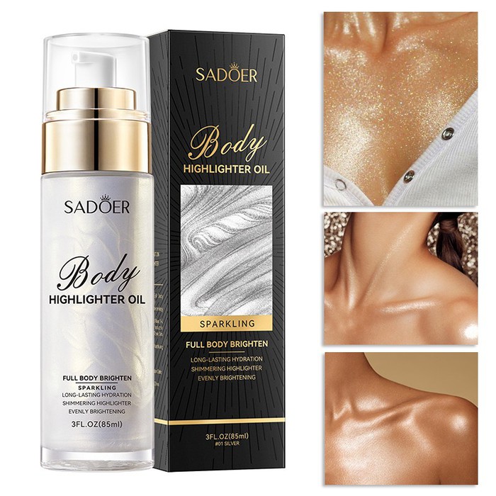 Сияющий хайлайтер для тела искрящийся с шиммером для создания эффектного и блестящего образа.Придаст вам невероятное сияние и роскошный вид.Идеально подходит для создания утонченного сияния на открытых участках тела.Не оставляет следов на одежде.