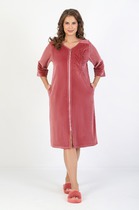 Сорочка женская из трикотажного полотна «кашкорсе» с набивным рисунком, слегка расширенная книзу, с короткими втачными рукавами, углубленной формой горловины. Низ изделия и нижние срезы рукавов обработаны эластичной тесьмой с фасонным краем.