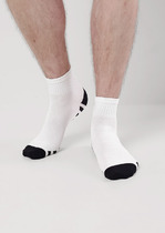 Набор стильных мужских носков с узором в виде имитации логотипов на паголенке. В упаковке 6 пар - по 2 пары каждой расцветки